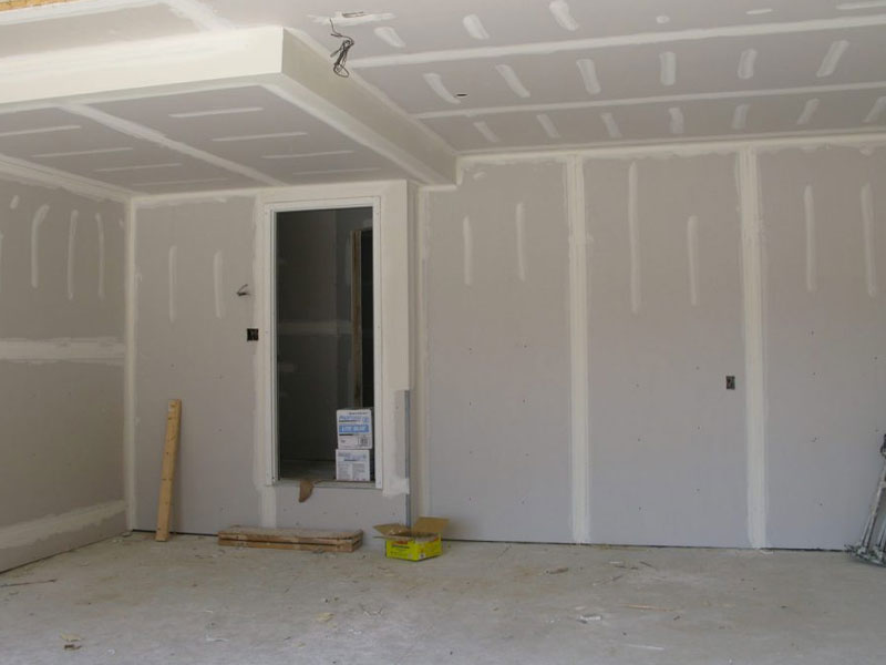 At this stage, various layers of joint compound are applied to the installed drywall sheets, followed by sanding to achieve a smooth surface.